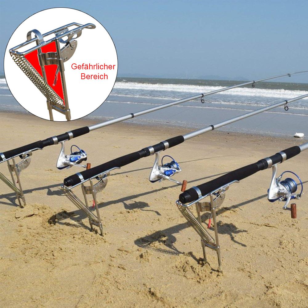- Der Angelrutenhalter mit doppelter federbelasteter Kippfunktion stellt Ihren Haken automatisch auf. Die stoßfeste Konstruktion und die Prismenkonstruktion machen den Halter einfach und stabil im Boden und drehen sich nicht. 2 eingebaute Bodenpfähle.