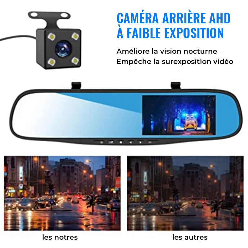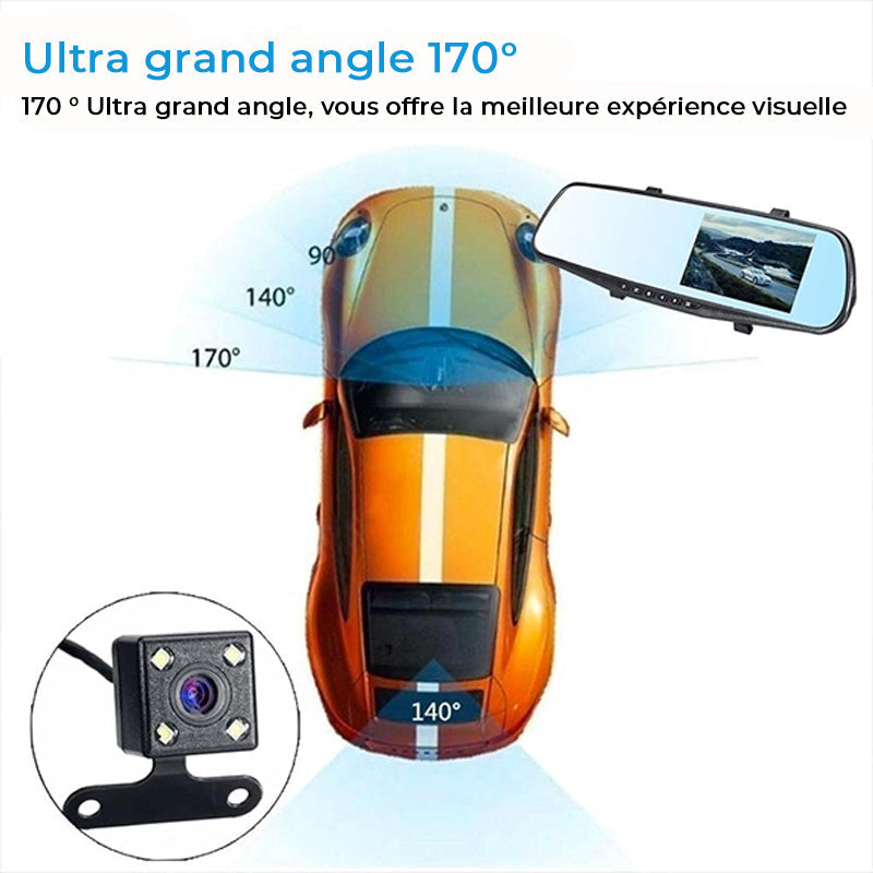 Zéro zone aveugle : Le rétroviseur sans angle de vue arrière sans angle mort vous aide à voir toute l'image derrière vous. Il ne bloquerait pas votre vue même les jours de pluie, en particulier lorsque vous reculez, ce que d'autres rétroviseurs ne peuvent pas réaliser. Plus de soucis pour les obstacles sur le siège arrière. La caméra de tableau de bord miroir X1 vous permet de conduire en toute sécurité !