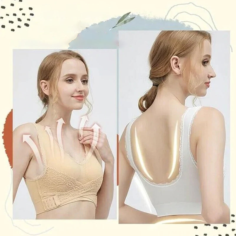 Drahtloser vorderer Kreuzschnallen-Spitzenlift-BH