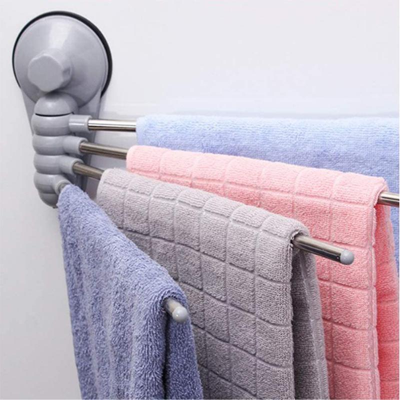 Der Kleiderbügel hat insgesamt vier Arme, um Handtücher, Handtücher oder Tücher, Schwämme oder Tücher zum Waschen zu platzieren.