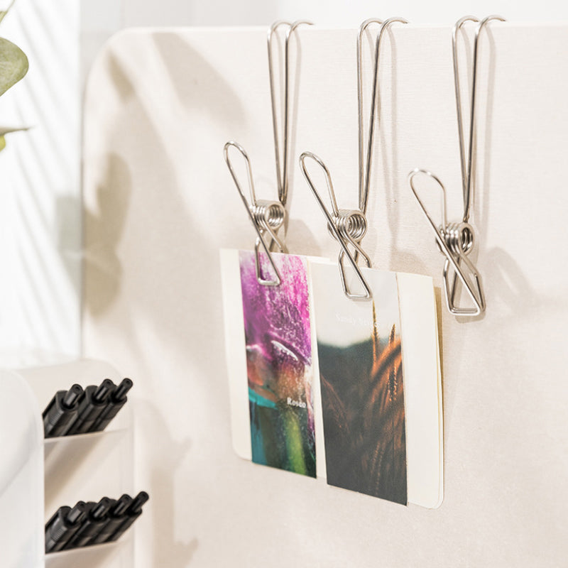 - 🧷 [Cleveres Design] Edelstahl-Clip mit langem Schwanz hat einen Haken, der an der Querstange aufgehängt werden kann. Sie können einige Kleinigkeiten aufhängen, die Sie nicht auf dem Schreibtisch aufbewahren möchten. Es wird ordentlich und platzsparend sein.