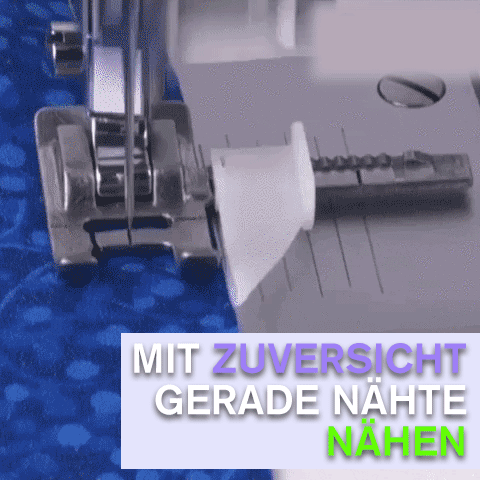 Der Nähfuß hat ein "Lineal" mit einer Führung, mit der Sie die Führung an einer beliebigen Stelle platzieren können.