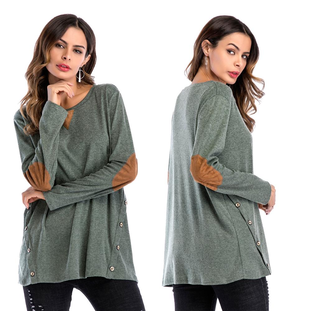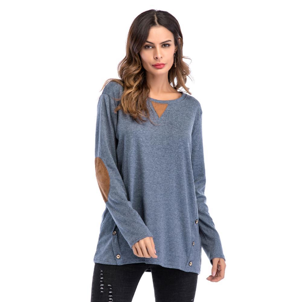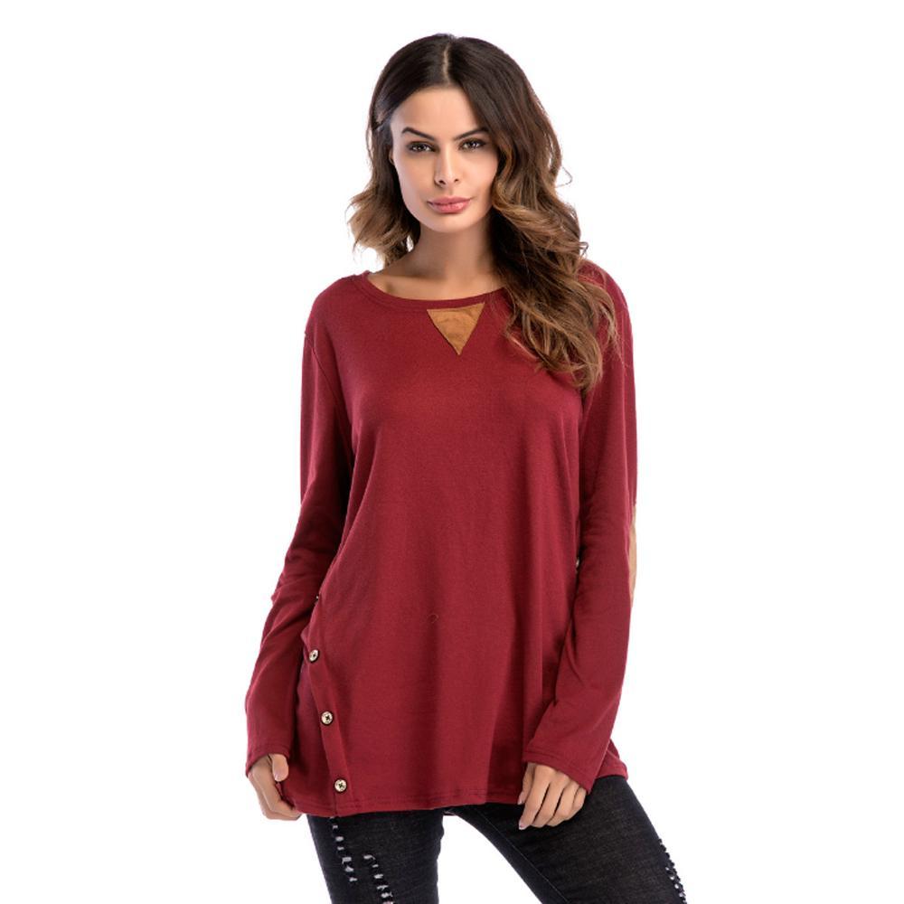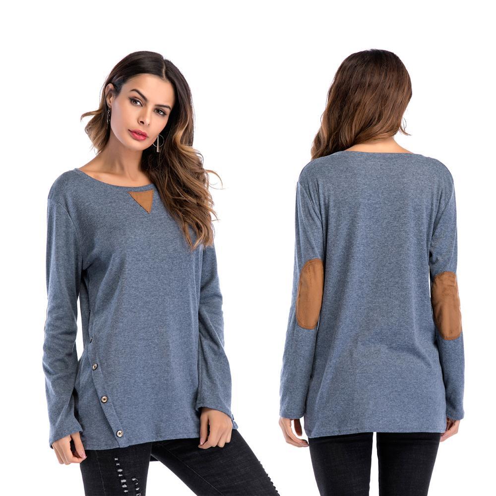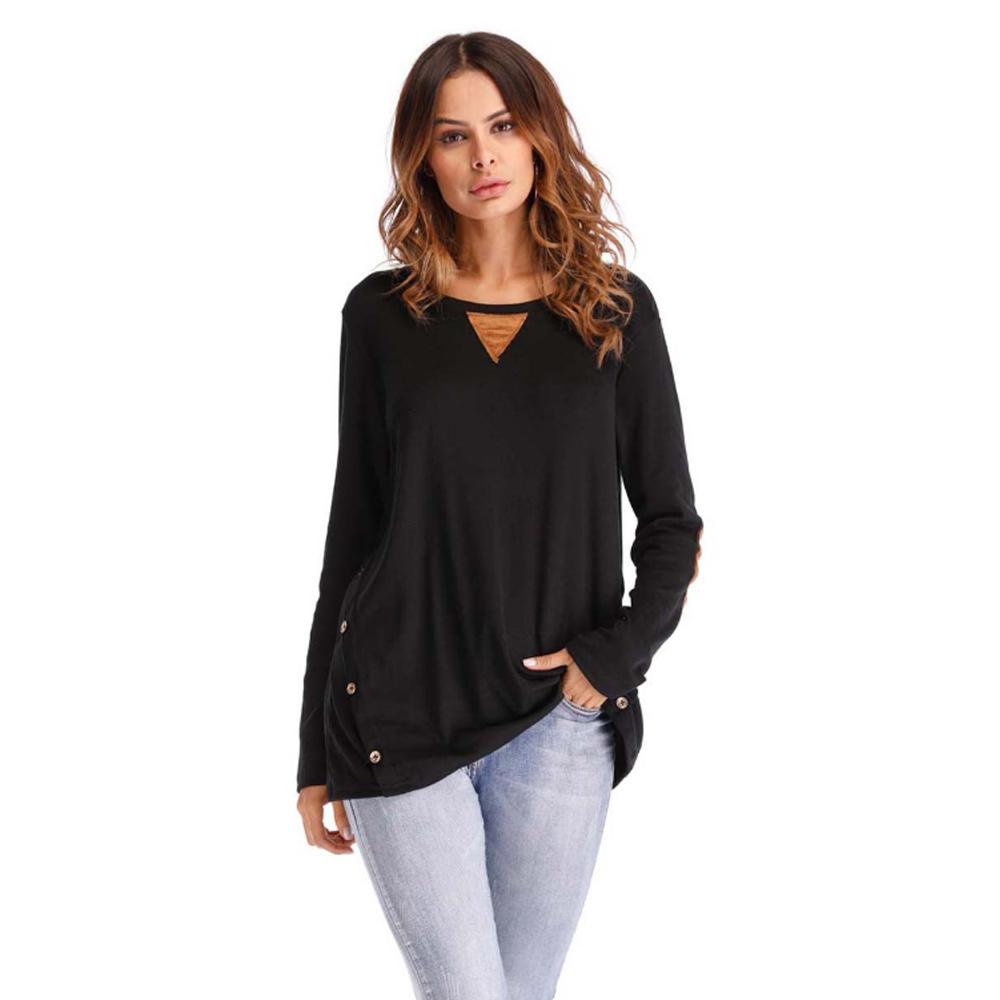 Einfarbiges Rundhals Button Collage Langarm-T-Shirt