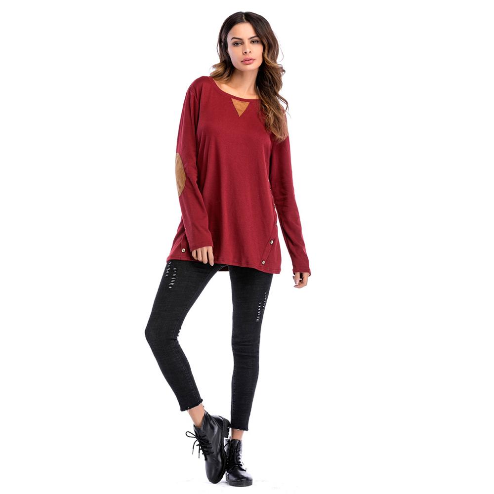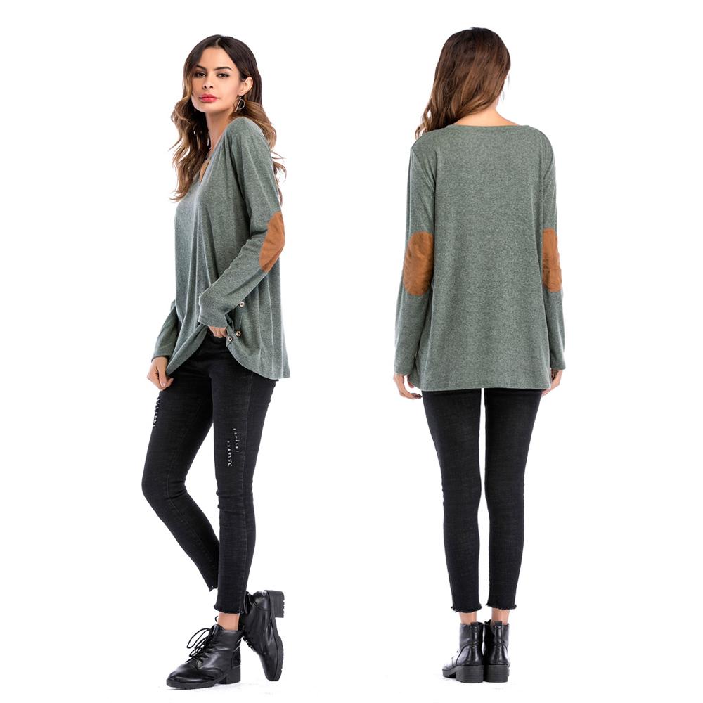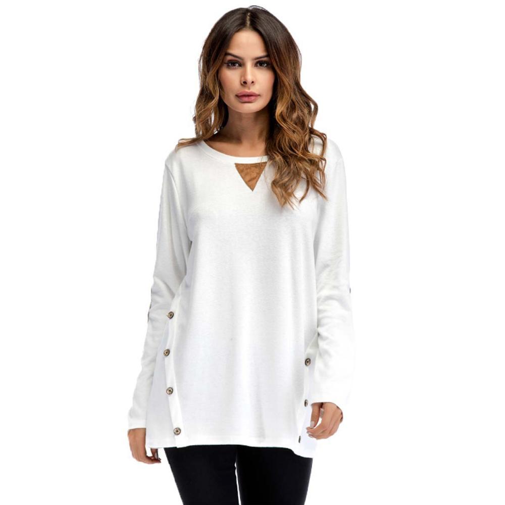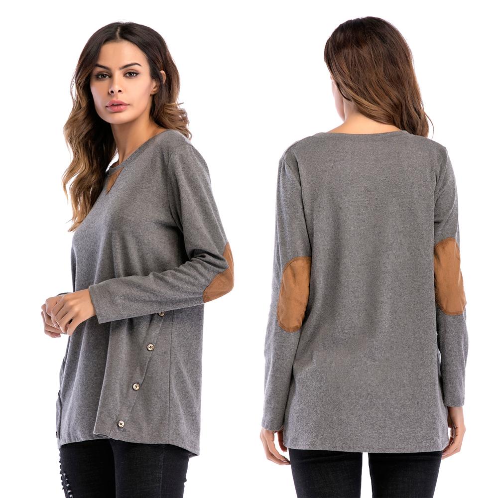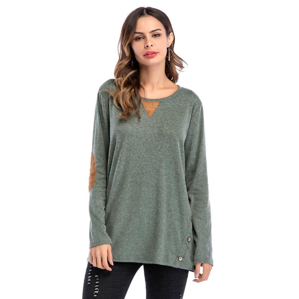 Einfarbiges Rundhals Button Collage Langarm-T-Shirt