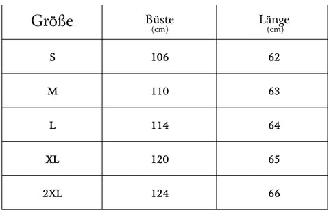 - Bitte beachten Sie die Größentabelle, um unnötige Probleme zu vermeiden.