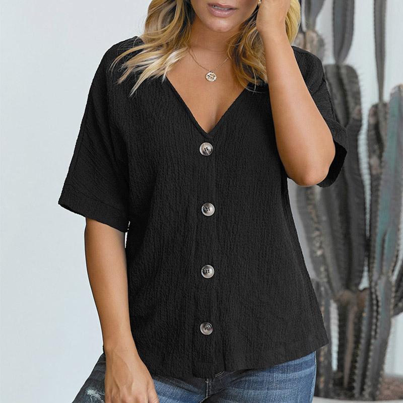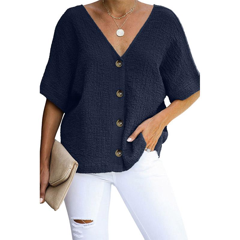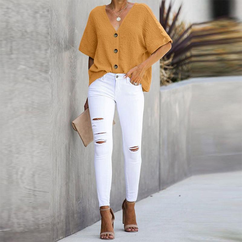 Einreihiges, kurzärmliges Hemd mit V-Ausschnitt