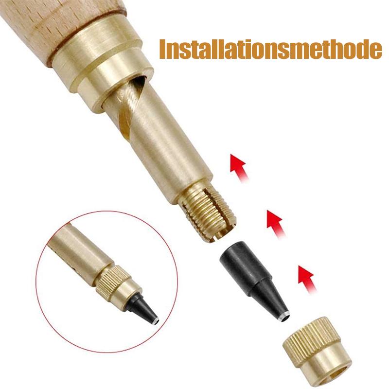 - 1*Einstellbares Schraubenlocher-Buchbinderwerkzeug und 6 Spitzengrößen 1.5,2,2.5,3,3.5,4 mm Holzgriff