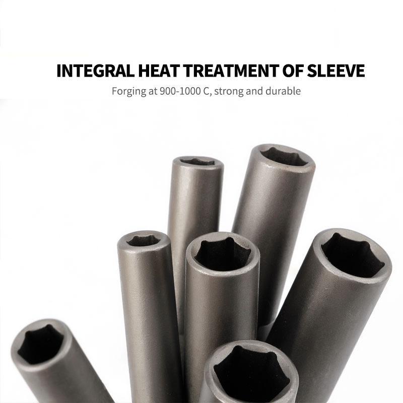 - DREHMOMENT HINZUFÜGEN: Der Außensechskant am Steckschlüsselkörper wird verwendet, um die Torsion mit dem Schraubenschlüssel manuell hinzuzufügen, wenn das Drehmoment von Elektrowerkzeugen unzureichend ist.