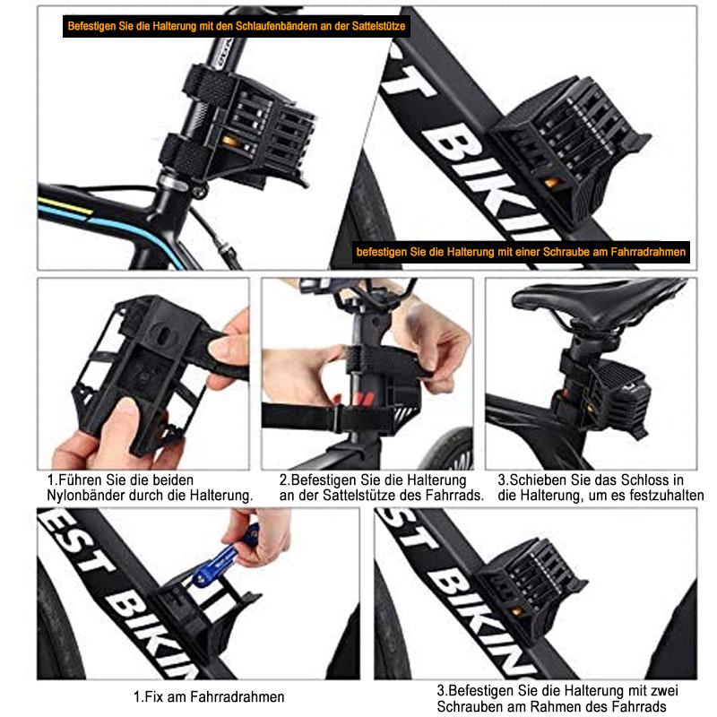 Starkes und langlebiges Material --- Das Schloss besteht aus einer Zinklegierung. Die Dicke jedes Legierungsstücks beträgt 1 cm. Das Fahrradschloss ist stark, korrosions- und sägebeständig und verhindert Diebstahl und Gewalt. Dieses Schloss kann am Sitzrohr befestigt werden. Es ist schwer abzuschneiden und abzubauen. Und es verhindert Bügelsäge, zerschlagen, Pry.
