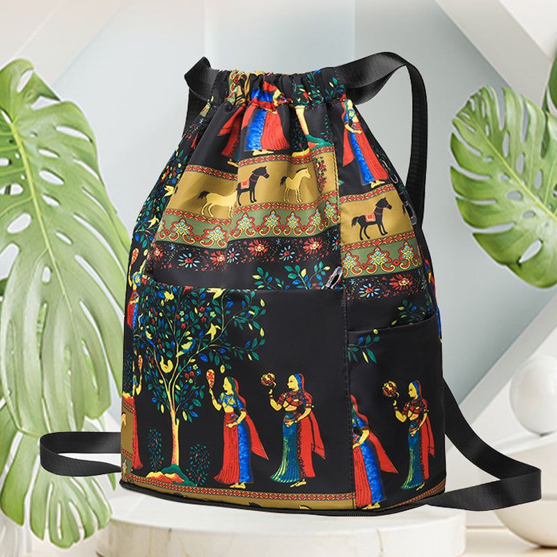 - Kordelzugverschluss: Der Rucksack verfügt über einen praktischen Kordelzugverschluss, der es Ihnen ermöglicht, schnell und einfach auf Ihre Sachen zuzugreifen. Ziehen Sie einfach an den Kordelzügen, um den Beutel mühelos zu verschließen oder zu öffnen.