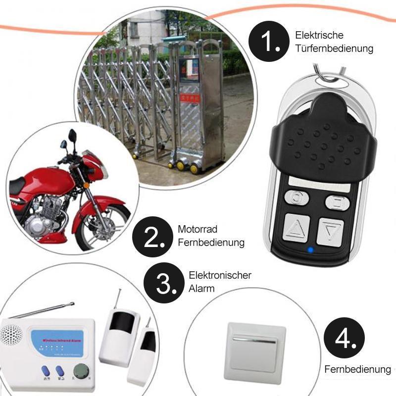 - DRAHTLOSER FERNBEDIENUNGS-DUPLIKATOR: Kopieren Sie vorhandene Fernbedienungen für Autos, Autosonnendächer, Garagentore, Tortüren, Heizungssysteme, Heimautomation, z. beleuchtung und etc.