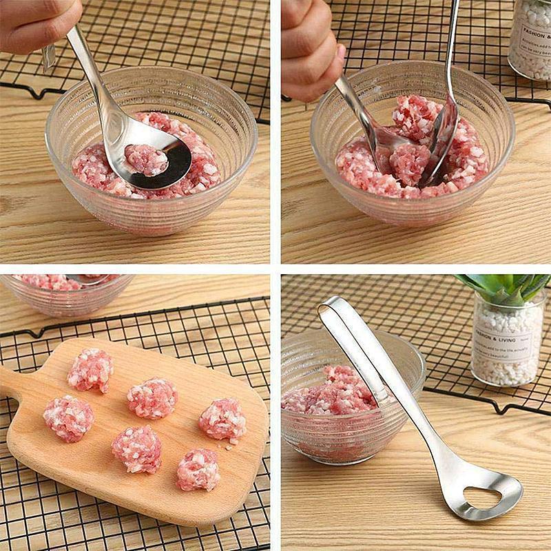 EINFACH ZU BENUTZEN - Alles, was Sie tun müssen, ist, den Löffel manuell zu drücken, die Fleischbällchen zusammenzudrücken und sie mit dem Löffel zu entfernen