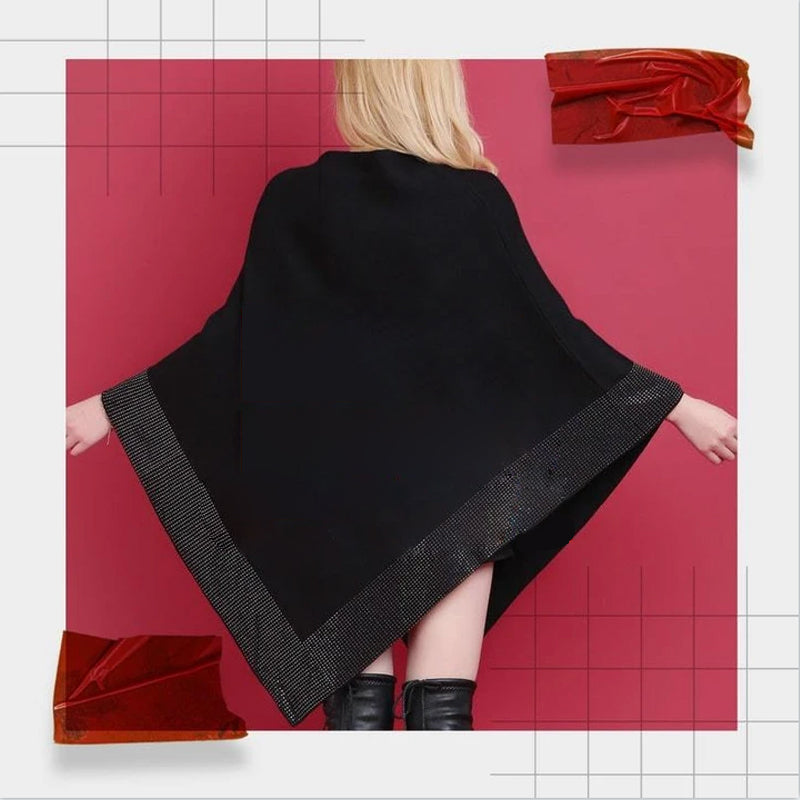 Es gibt vier Größen, M, L, XL, XXL. Fledermausärmel Umhang, geeignet für alle Körpertypen. Die Verarbeitung ist gut, die Kanten sind sorgfältig vernäht und es gibt keine losen Fäden oder Defekte.