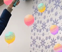 Kann ein schönes Blumen- und Punktmuster an die Wand malen.