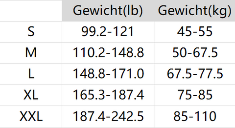 Bitte beachten Sie die Größentabelle, um unnötige Probleme zu vermeiden.