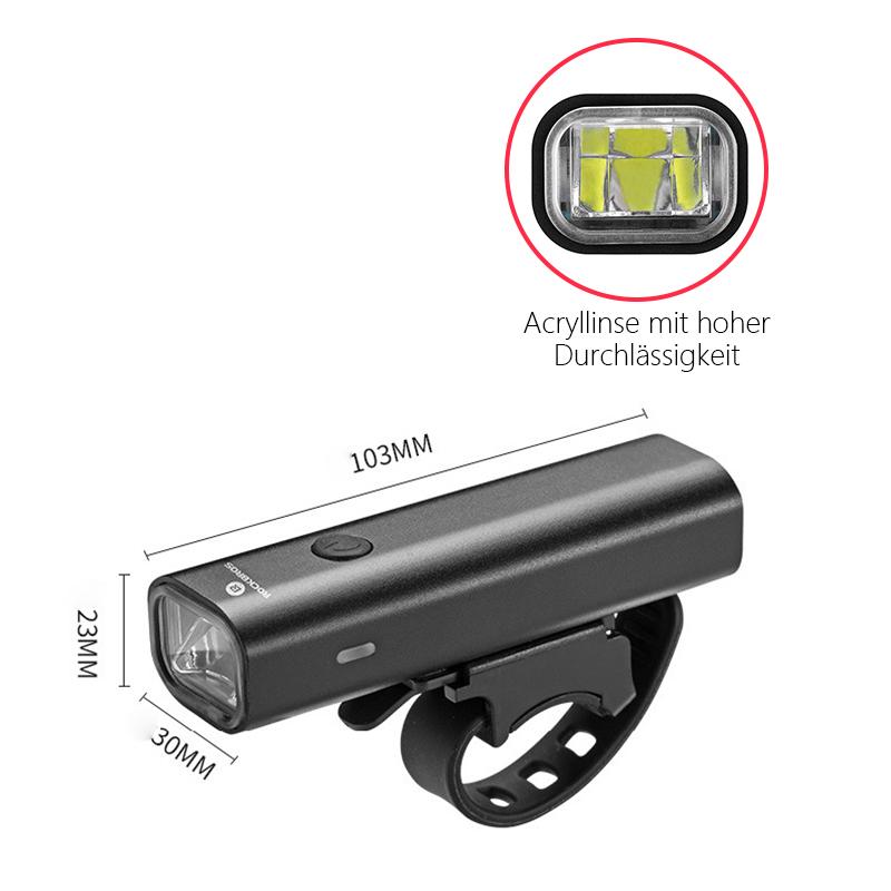 - ▶ 【USB-wiederaufladbare Fahrradleuchten】 Beide Leuchten sind USB-wiederaufladbar und verfügen über eine automatische voll aufgeladene Abschaltsystemfunktion, die Sicherheit und längere Akkulaufzeit gewährleistet.