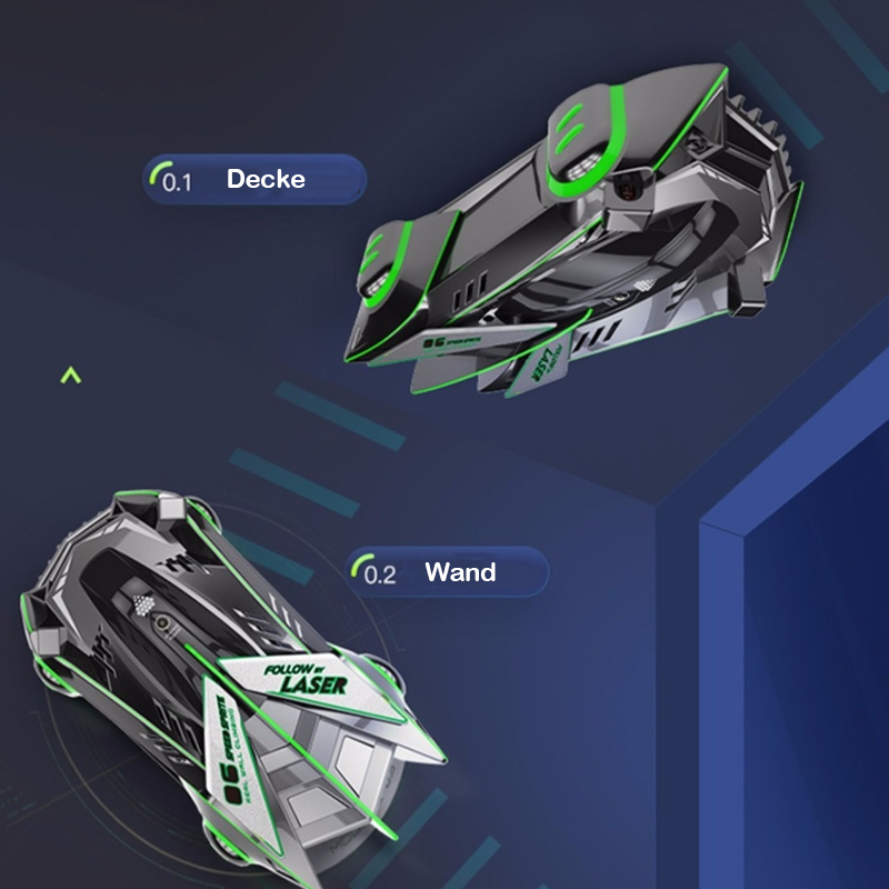 Dieses neuartige ferngesteuerte Auto mit aerodynamischem Design verfügt über "Wall/Floor" Dual Modes, es kann stetig auf dem Boden, glatten Wänden, Spiegeln, Fenstern und sogar an der Decke klettern.
