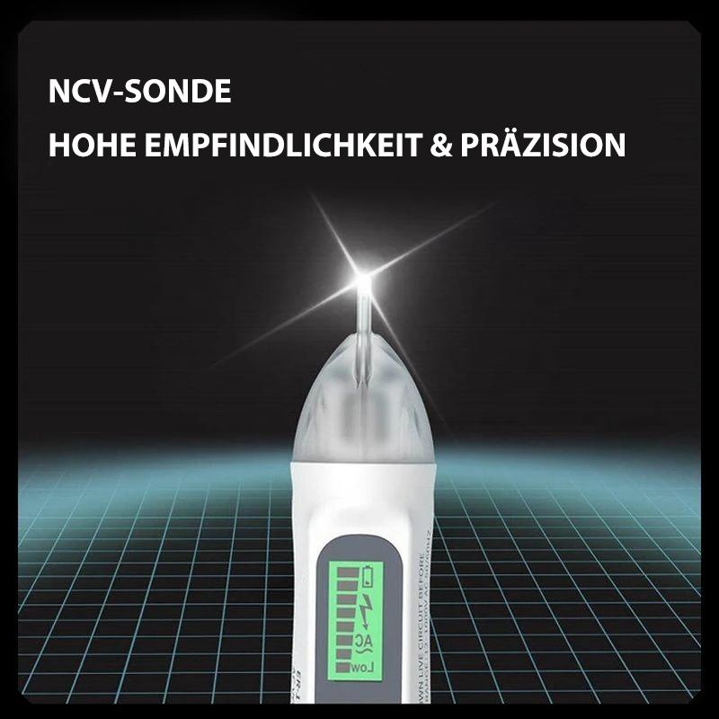 NCV-Sonde mit hoher Empfindlichkeit: Die hochempfindliche NCV-Sonde kann die berührungslose Erkennung von Stromversorgung und Verkabelung. Anfänger können es einfach, sicher und schnell verwenden. Der effektive Erfassungsbereich beträgt 0-8 cm und der Betrieb ist isoliert.