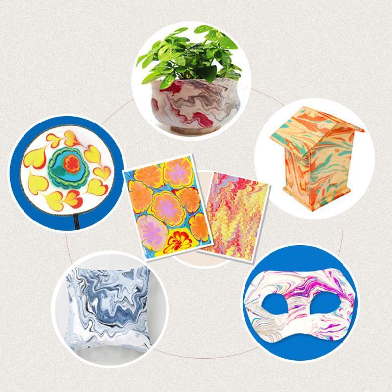 Erstaunt über die schöne Ästhetik marmorierter Drucke? Nun, sie werden nur durch Flüssigkeit erzeugt! Warum nicht versuchen, mit diesem kompletten Satz bunter Pigmente und Emulsionen zu basteln? Die Farbmuster schweben auf dem Medium, damit Sie frei Ihr eigenes Meisterwerk schaffen können.