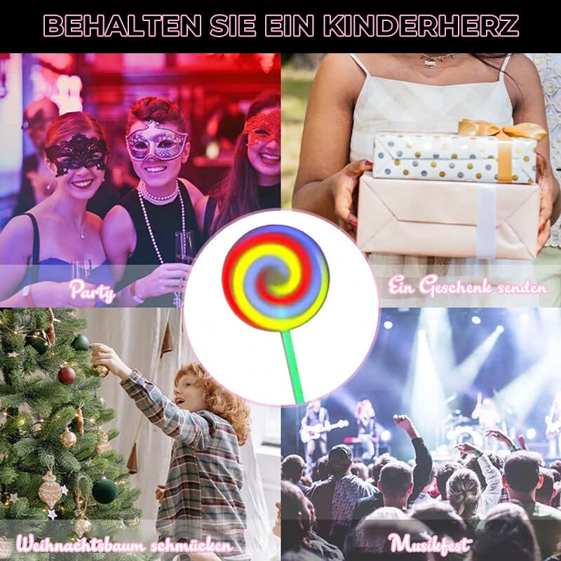 ✨ Cooles Im Dunkeln leuchtendes Spielzeug:Der leuchtende Leuchtstab mit seiner bunten und niedlichen Lutscherform, der blinkt, ist ein sehr cooles Spielzeug, das Kindern Freude bereitet.