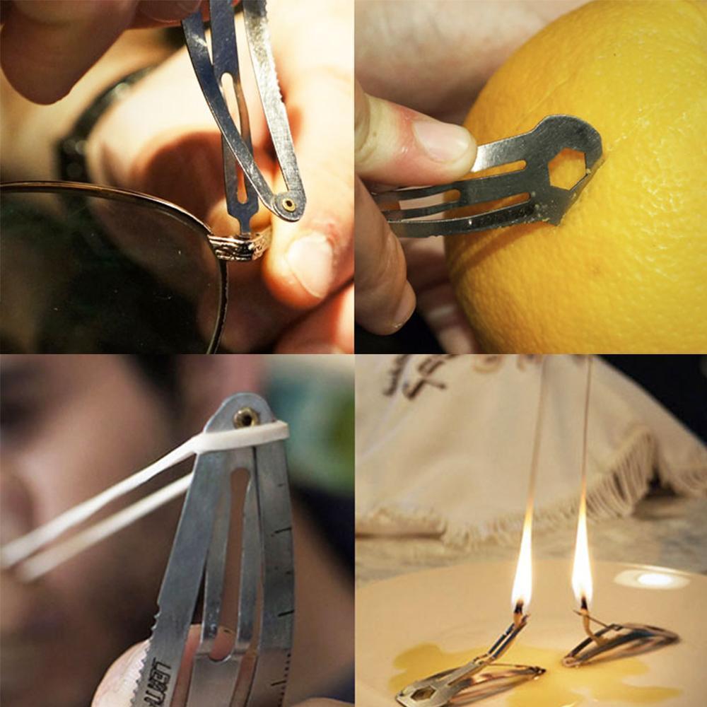 Dies ist wirklich ein tragbare multifunktionale Tool. Es kombiniert verschiedene Werkzeuge in einer winzigen Haarspange, so dass Sie im Notfall Ihre Haarspange herausnehmen und zum Überleben kommen können.