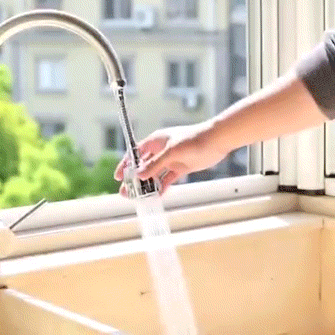 ▲ Der Wasserhahnkörper ist um 360 ° drehbar und für Doppelwaschbecken geeignet.