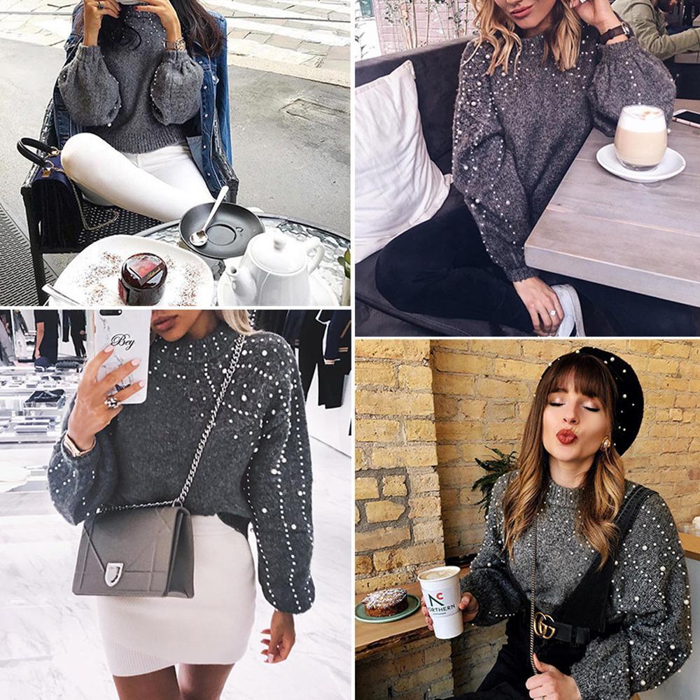 Rundhalsausschnitt lose kurze Perle dekorative Pullover