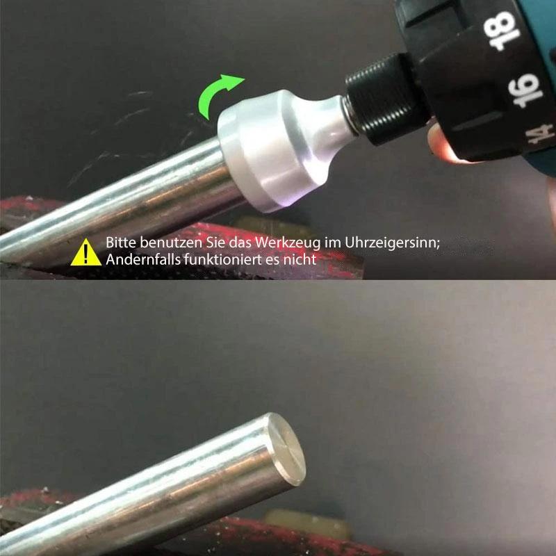 Einfach zu bedienen - Diese externe Entgratungsfase schert Metall Schicht für Schicht. Verwenden Sie die niedrigste Geschwindigkeit am Bohrer und üben Sie dann leichten Druck aus, um den Grat zu entfernen. Sicherheitsbewusstes Design bedeutet keine geschnittenen Hände, keine Funken und keine Verbrennungen.