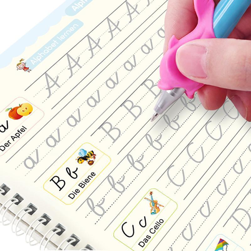 Hinweis:Ein Satz enthält vier Schulhefte Zeichnung, Mathematik, Nummer, Alphabet und BLEISTIFTGRIFFSATZ (Wird verwendet, um die Haltestellung des Stifts zu korrigieren)