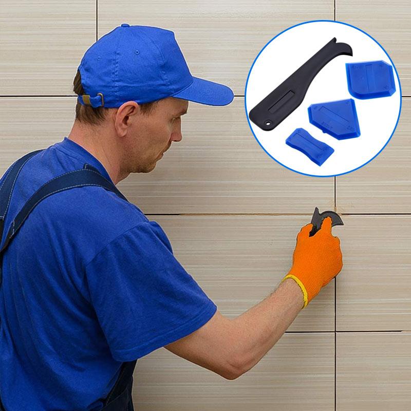 - Dieses Werkzeugset enthält vier Werkzeuge, die eine Vielzahl von Dichtungskantengrößen und -formen bieten und für alle Kanten, Ecken und Verbindungen einfach zu verwenden sind. Es kann das Dichtmittel und den Mörtel in wenigen Minuten effektiv entfernen.