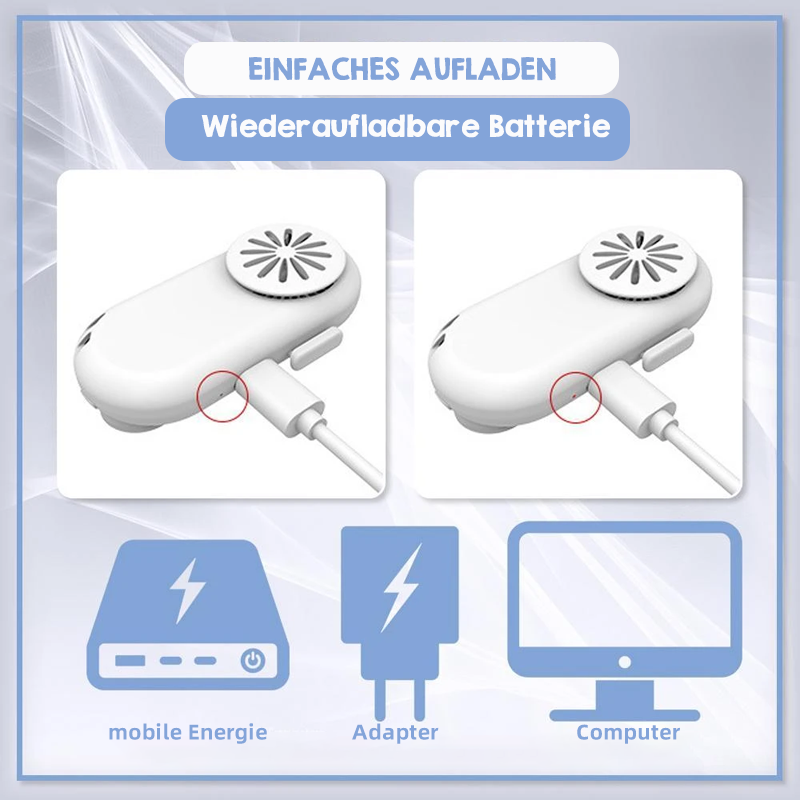 Tragbar und leicht: Es ist leicht und fühlt sich beim Tragen kaum an. Das Design im Taschenformat macht ihn zu einem perfekten Ventilator für Outdoor-Aktivitäten wie Arbeit, Reisen und sogar Laufen.